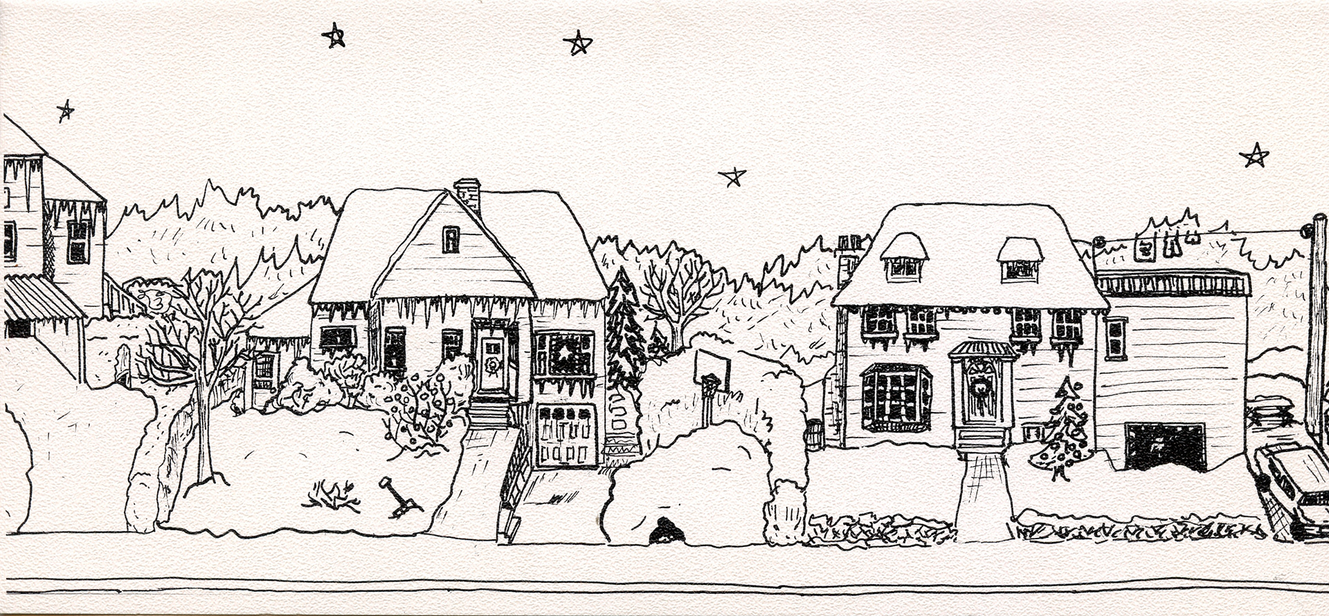 Sherbrooke Snow, Card Print from Pen and Ink on Paper, 1974